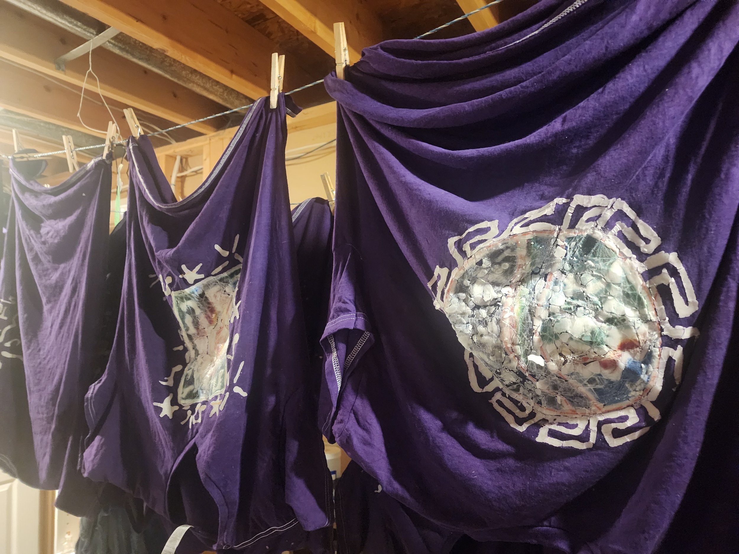 Tracy Sanders has been making Batiks for 25+ years. Each piece starts white it evolves from a simple outline and is free hand drawn with wax. Dyes are mixed in small batches then boiled and washed to create unique, one of a kind wearable piece of art.